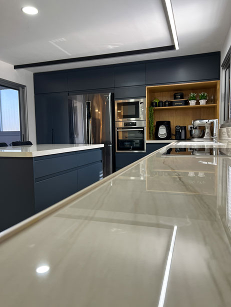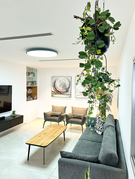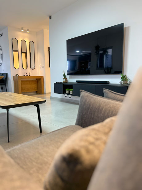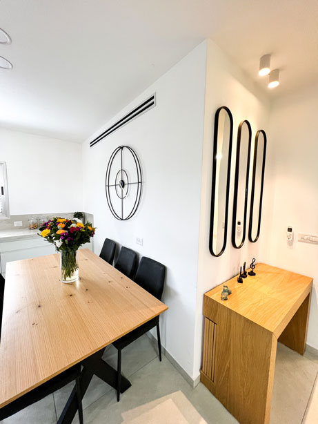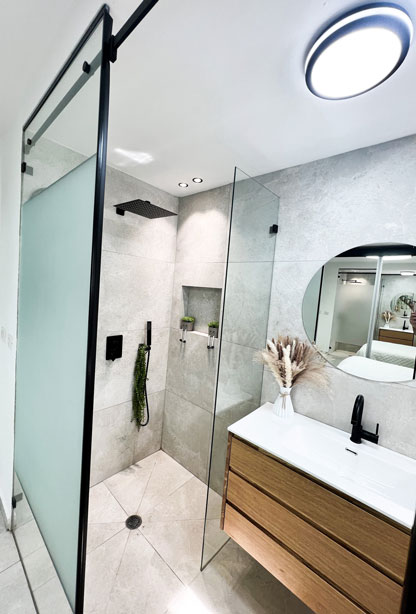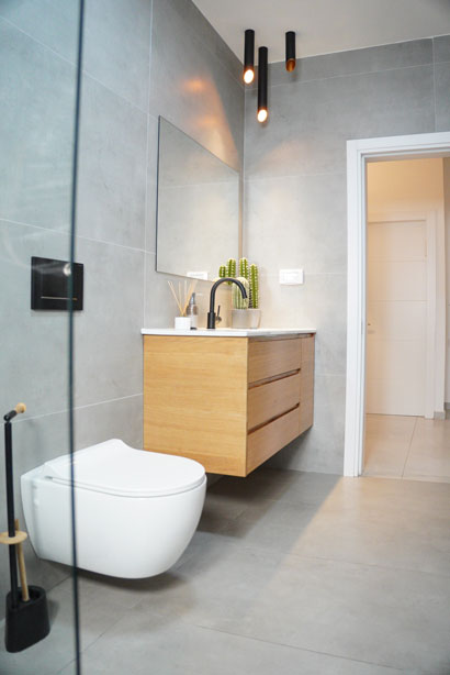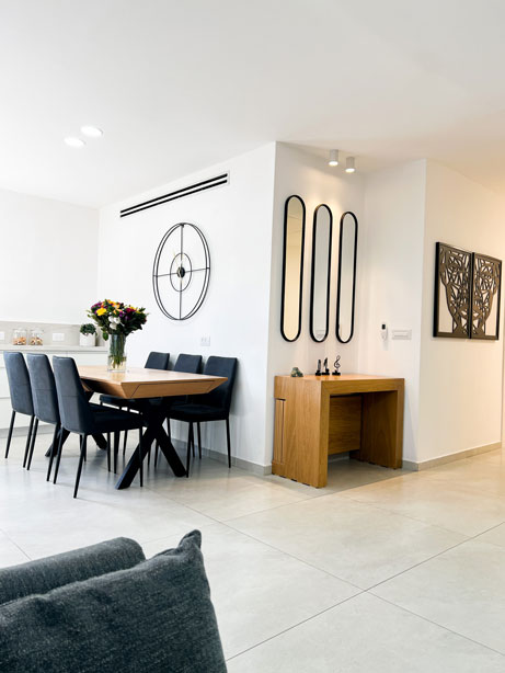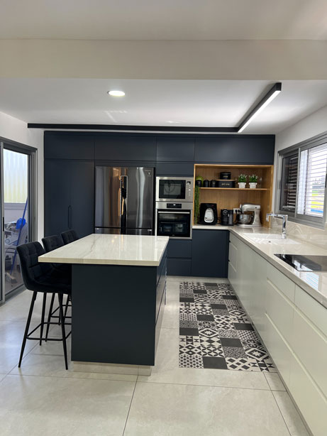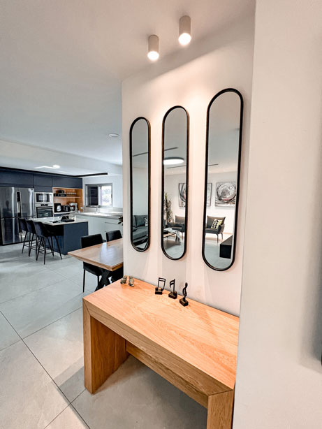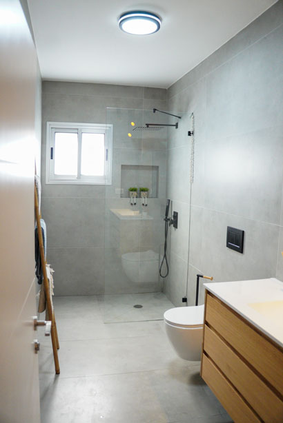 הלקוחות רצו רק לשפץ חדרי רחצה ומטבח לאחר פגישת עבודה החלטנו לשבור את כל הבית ולהקים אותו מחדש, כל הקירות הפנימיים נשברו , כל חדרי השינה נבנו מחדש , יצרנו סוויטה בחדר שינה הורים כולל חדר רחצה מרווח וסופר פרקטי. המטבח היה ישן ולא פרקטי , ובמקומו המטבח קיבל נוכחות ופונקציונליות ומותאם למשפחה שומרת כשרות .לא היה מרפסת בקומה השניה , קיבלנו היתר והוספנו מרפסת ענקית בבית . חדרי הרחצה היו נמצאים בכלל בצד השני של הבית , ביטלו את החלל והקמנו אותו מחדש בסמוך לחדרי השינה של הבית התוצאות מדברות בעד עצמן.